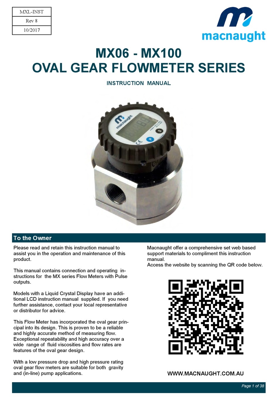 Macnaught Mx Series Industrial Flow Meters Positive Displacement Flow Meters Instrumart