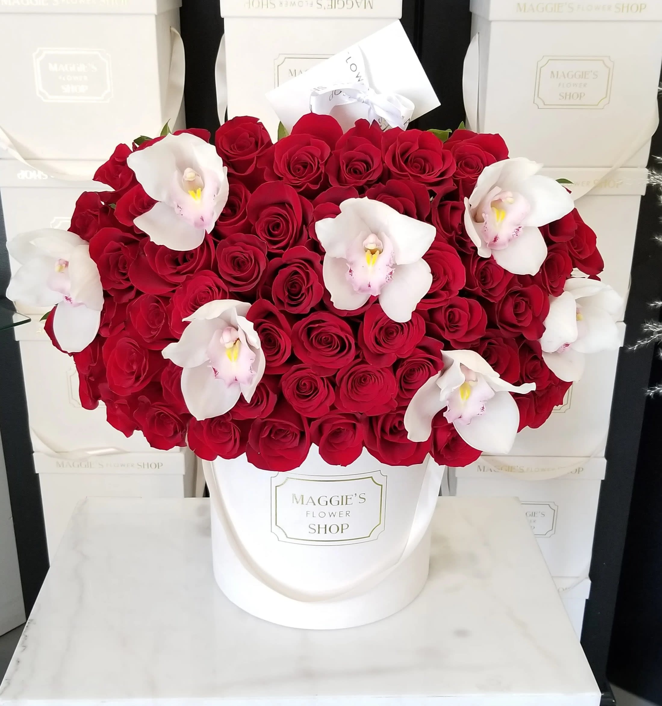 Mfs 50 Roses X Orchids Box In Maywood Ca Maggie S Flower Shop