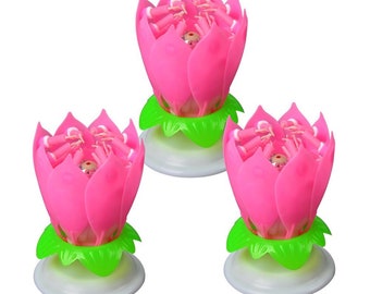 3 Pcs Multicolor Music Birthday Candles Lotus Flower Rotating Musical Cake Topper Romantic Decoratio Birthday Candles Lotus Flower Candle Flower Candle